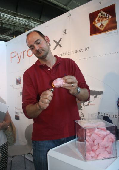 德国PyroTex公司在Techtextil中展出了高性能阻燃纤维,可用于个体防护、交通运输、室内装饰、耐高温过滤等多种工业用途和领域。据悉,该纤维的特点是可染色、遇高温不熔融、可根据需求制成长丝或短纤以及非织造材料。