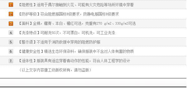 适用于偶尔接触到火花、可能有火灾危险等场所环境中穿着