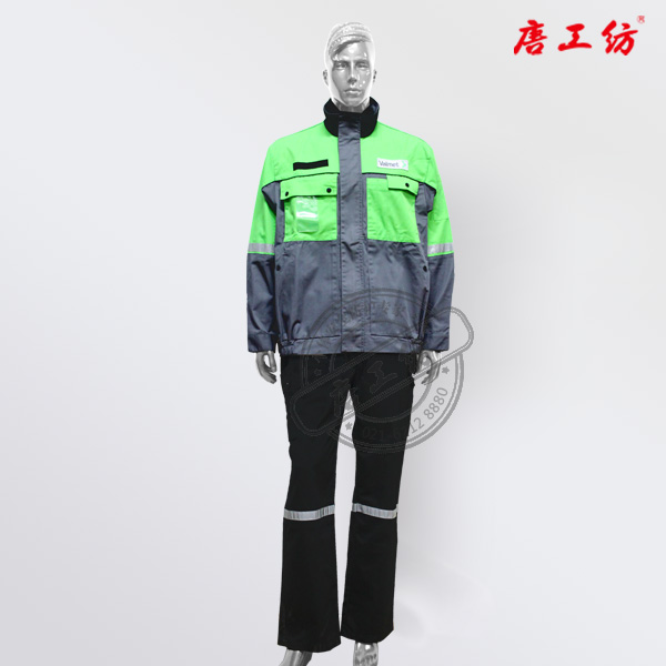 阻燃分体式套装,基材采用310g阻燃后整理全棉斜纹材质,符合国标B级要求。能够有效保护人体免受熔融焊渣、火花、高温热源的威胁。