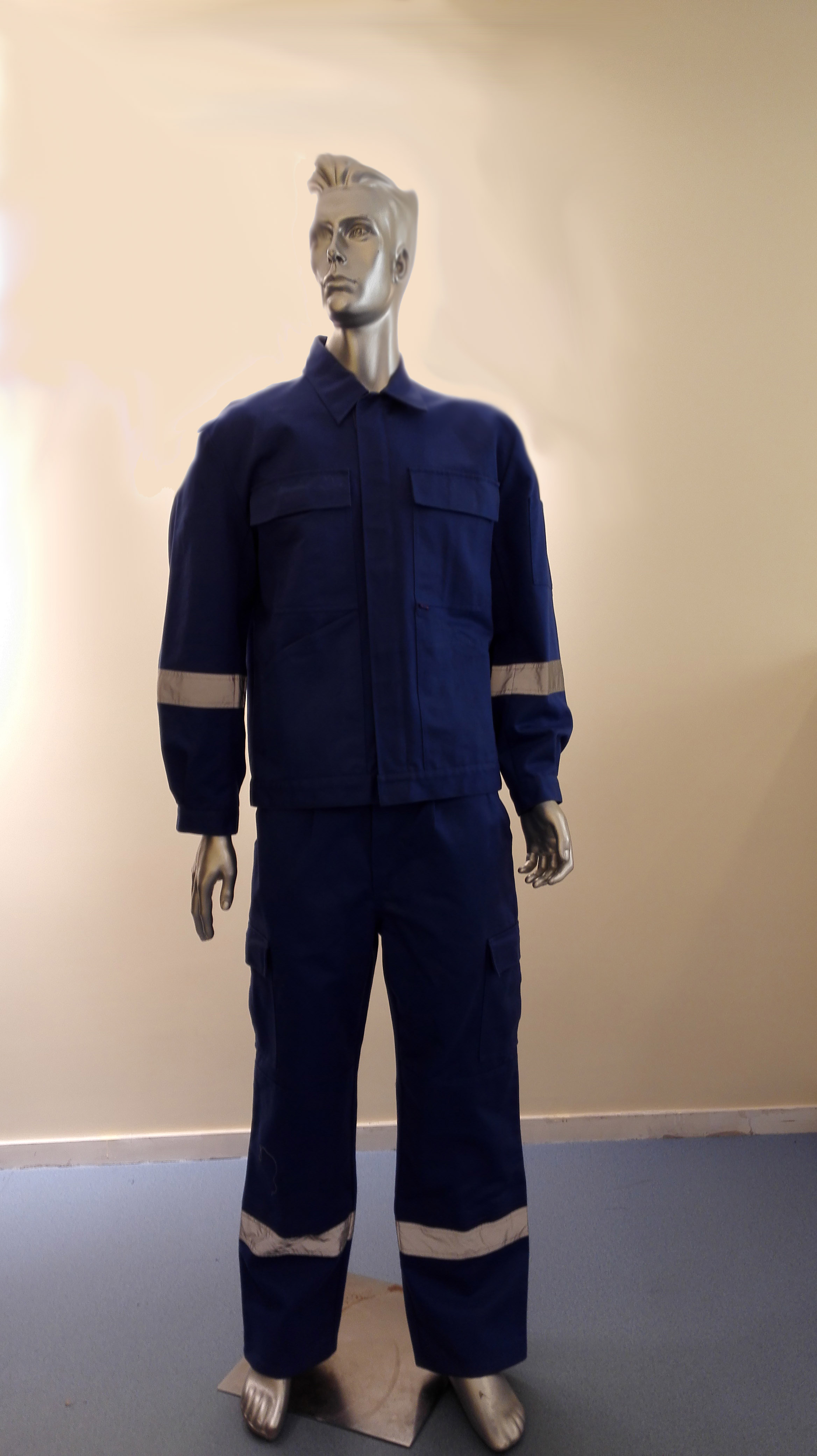 春秋季穿着,防静电功能,上装肘部和下装小腿处有反光条。