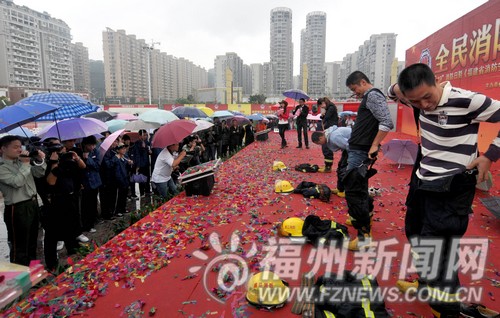 8日晚,台江消防大队在青年会广场举行了“全民消防 生命至上”主题晚会。最引人注目的是一场特殊的服装秀:台江消防大队的30名官兵身着制式警服、防核服、防酸服等各种消防特种服装,手持消防救生器材走上舞台,向观众们展示各种不同的服装和先进的消防装备,让观众大开眼界。