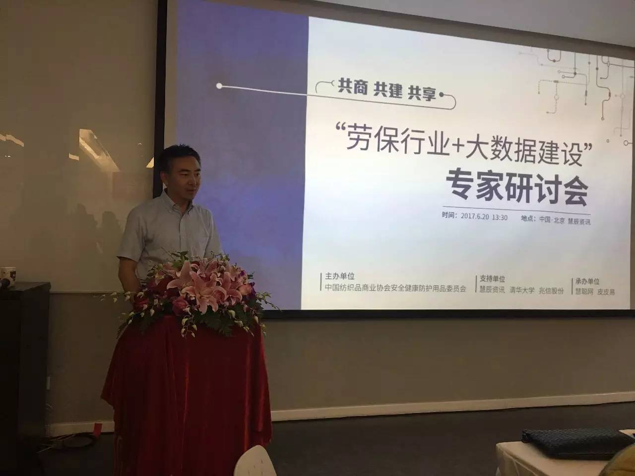 由中国纺织品商业协会安全健康防护用品委员会主办的"共商、共建、共享——‘劳保行业+大数据建设’"专家研讨会于6月20日在北京慧辰资讯会议中心召开。此次专家研讨会得到了慧辰资讯、清华大学计算机系智能技术与系统国家重点实验室、兆信股份和慧聪网、皮皮易B2B电商平台的大力支持。