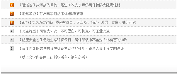 抗焊接飞溅物,经过50次洗水后仍可保持防火阻燃性能