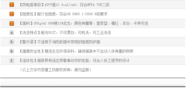 【防电弧等级】ATPV值12.4cal/cm2,符合NFPA 70E二级