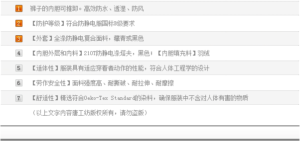 【唐工纺】防静电羽绒服套装611523-BK50651723-BK50