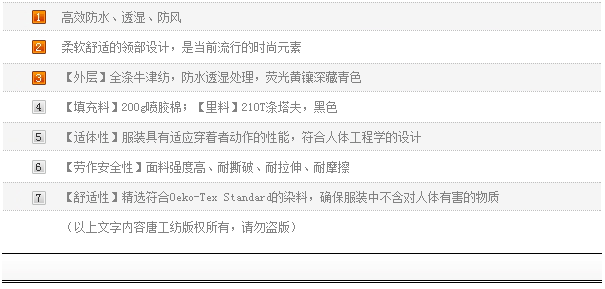 【唐工纺】荧光黄防寒夹克603837-FYBK34